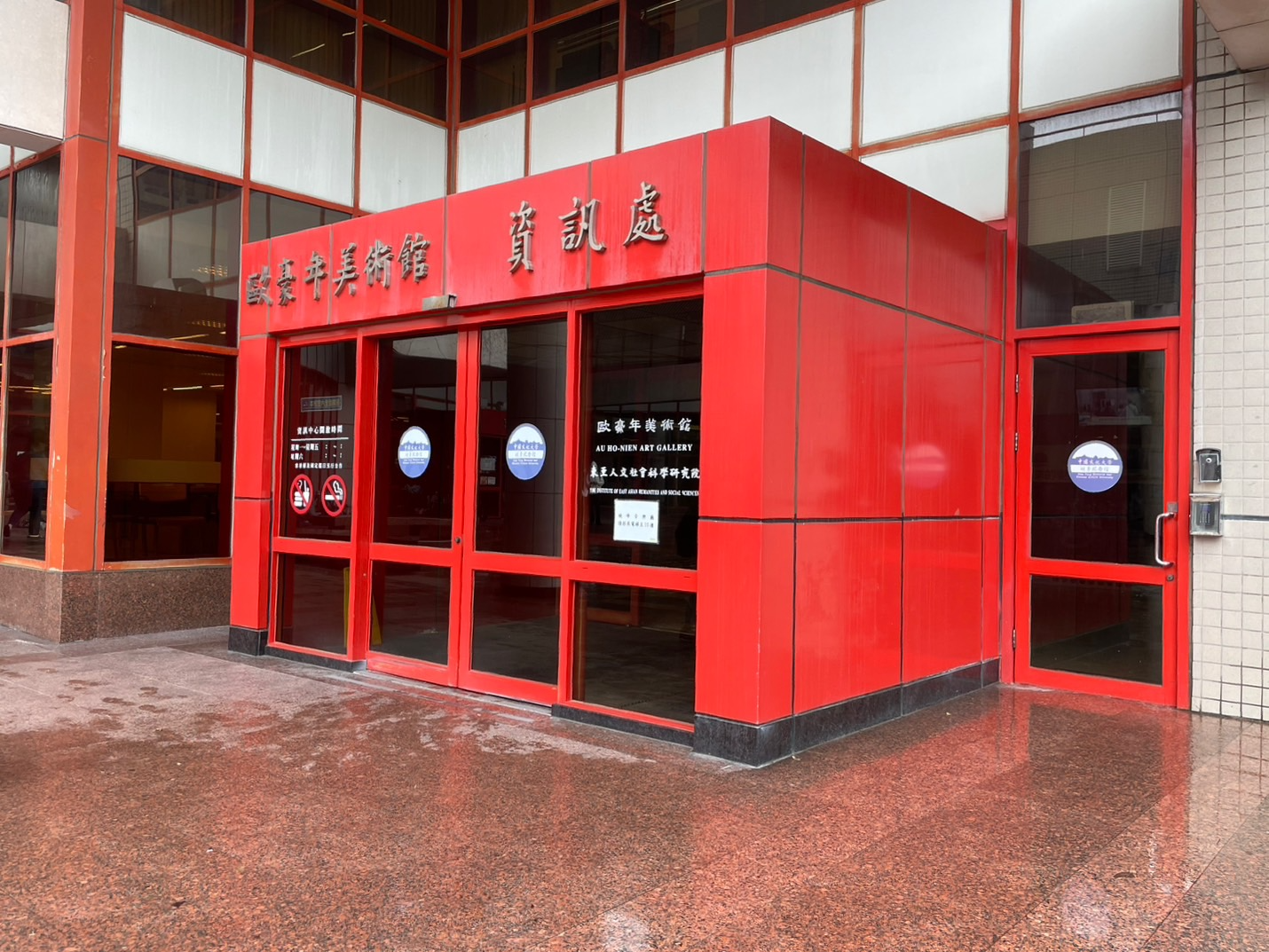 ▲文大曉峰圖書館旁資訊處,為風除式的建築設計,能夠防止冷氣外溢、阻隔風沙直接吹進室內。 攝|童韋宣