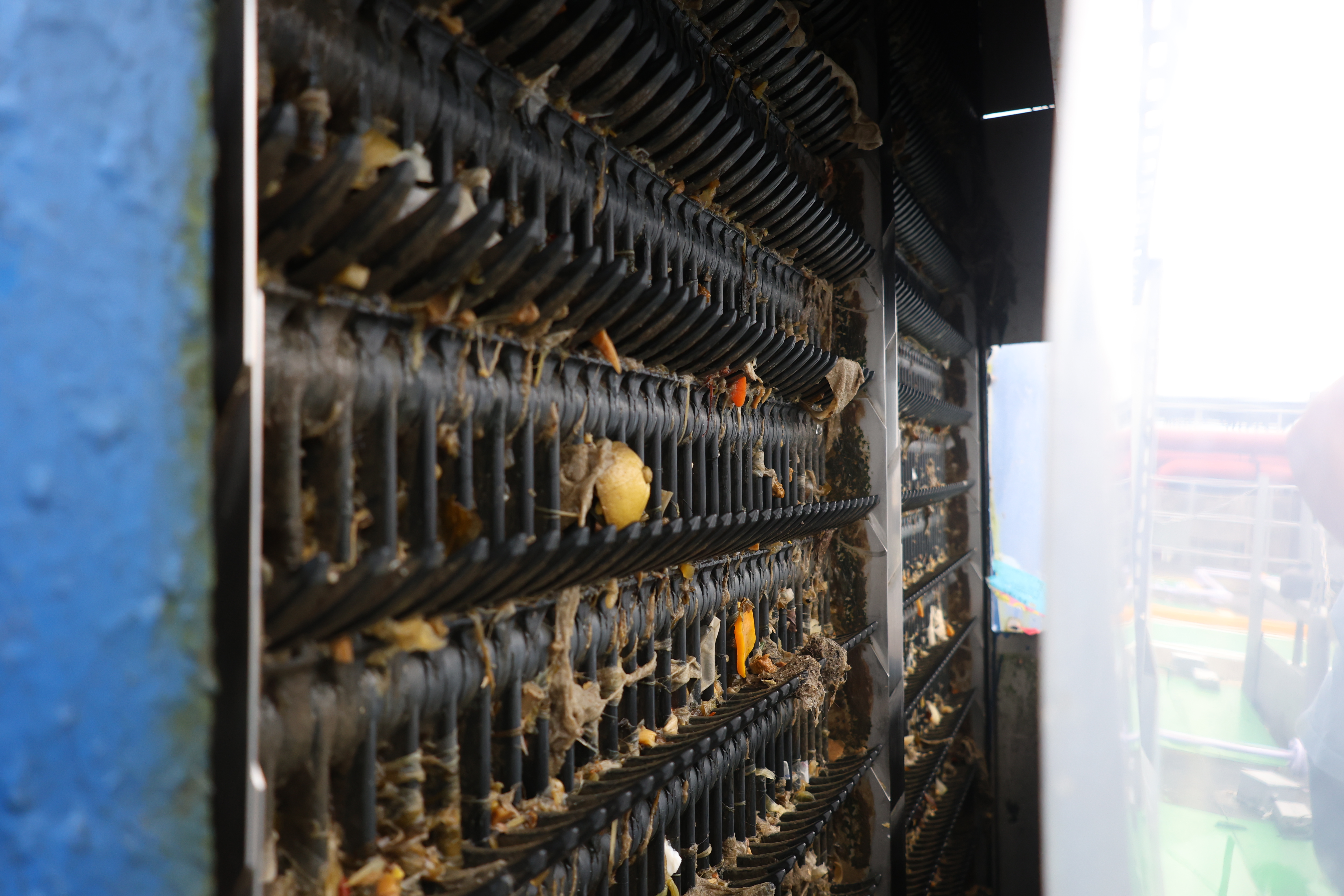 ▲廢水處理廠過濾裝置,用來過濾廢水中較大的固體,同時呼籲民眾不要亂丟垃圾進馬桶。攝|呂孟哲