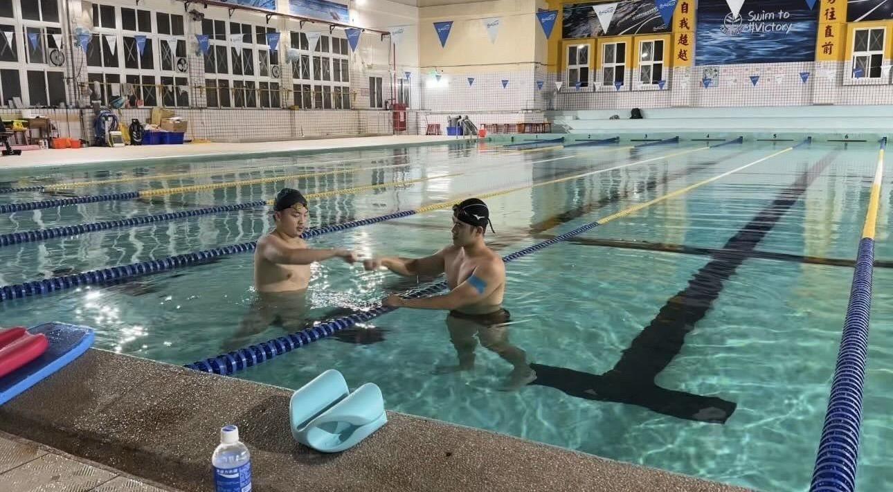 ▲(右)為許自雄投入教練工作,用心指教選手游泳技巧。攝|高倩蓉