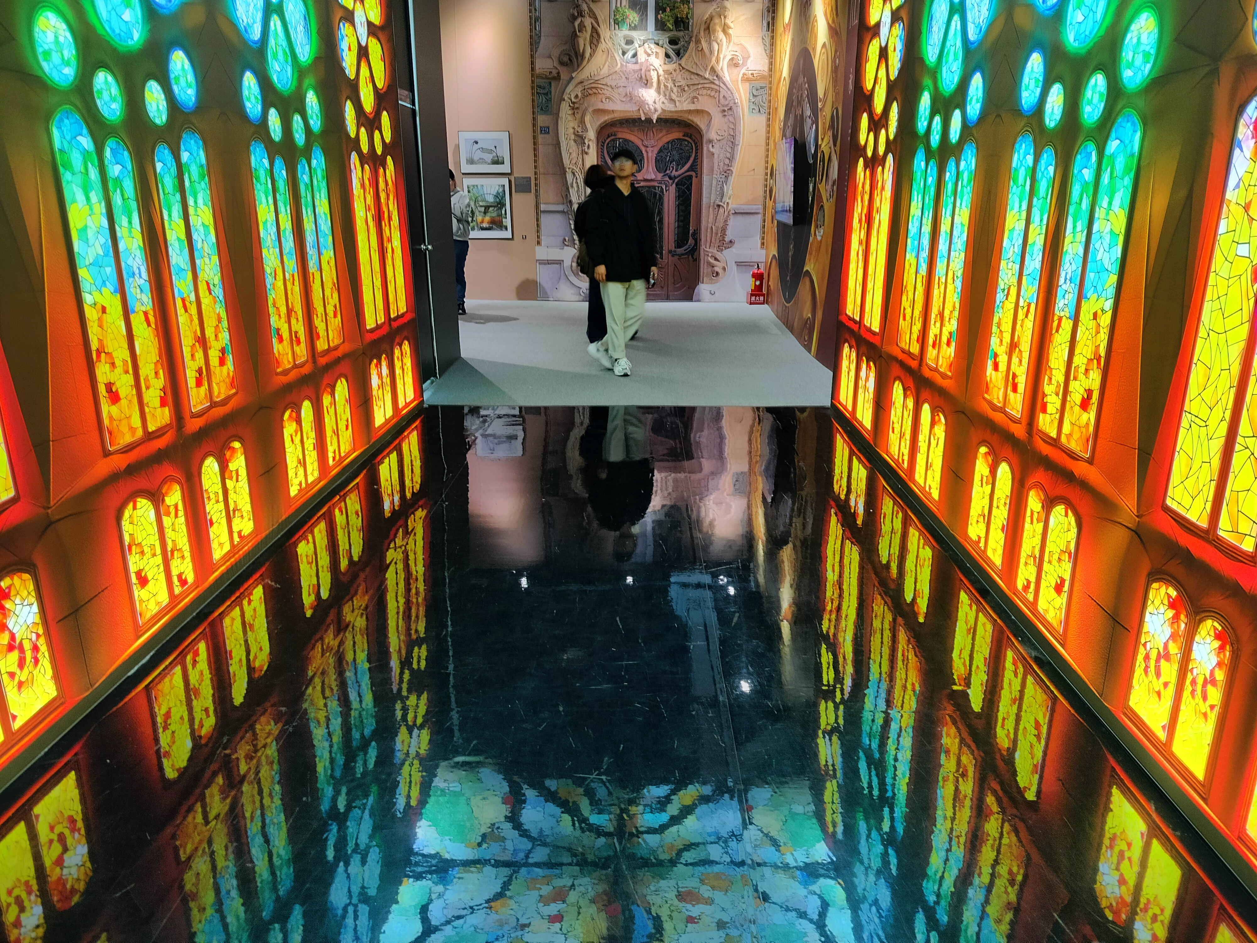 ▲圖為「光之聖殿的長廊」展區,利用光影的投射讓人彷彿置身在二樓。攝|陳昱蓁