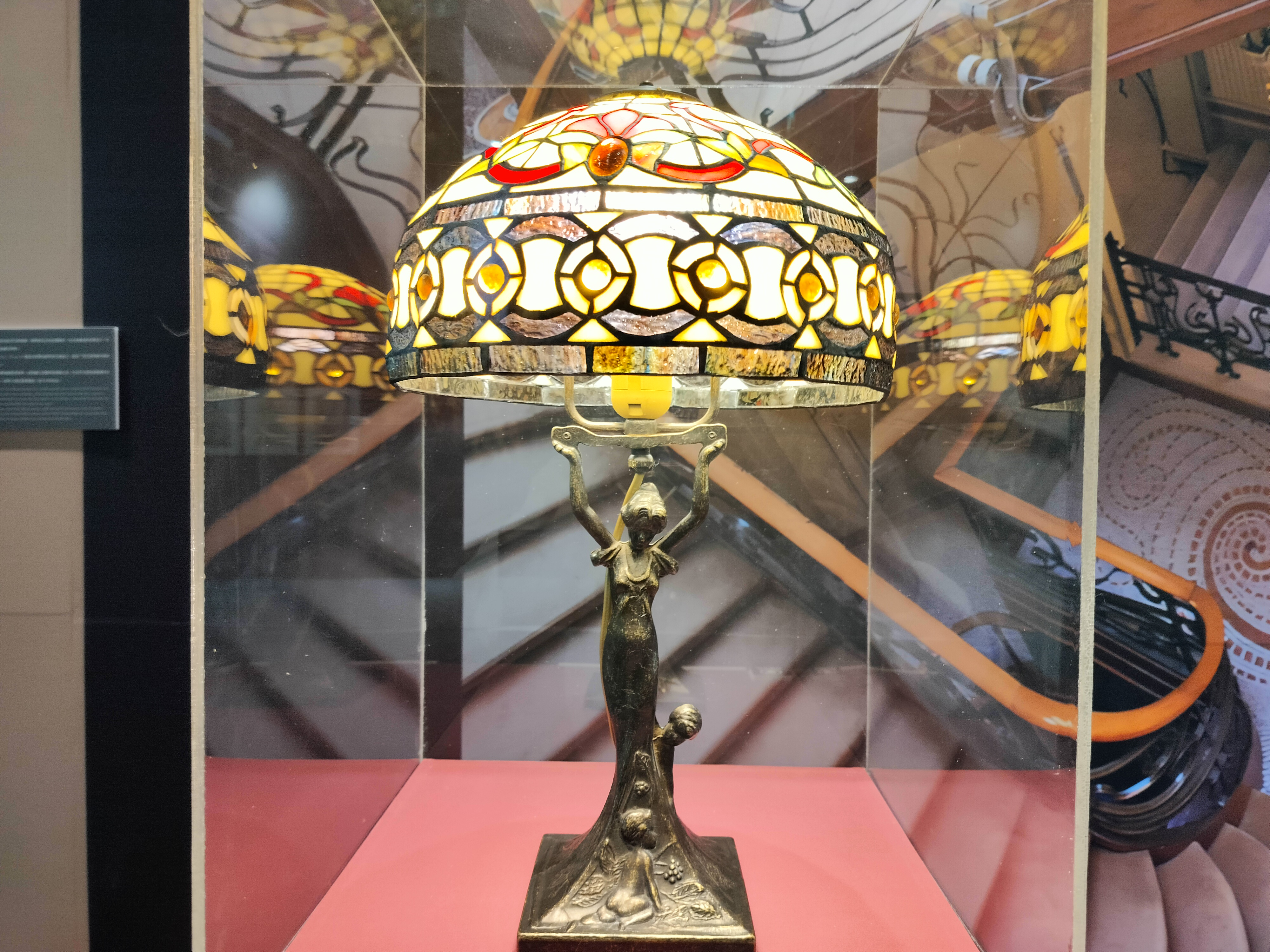 ▲圖文新藝術時期的檯燈,強調當時具代表性的鮮豔色彩和繁複線條。攝|陳昱蓁