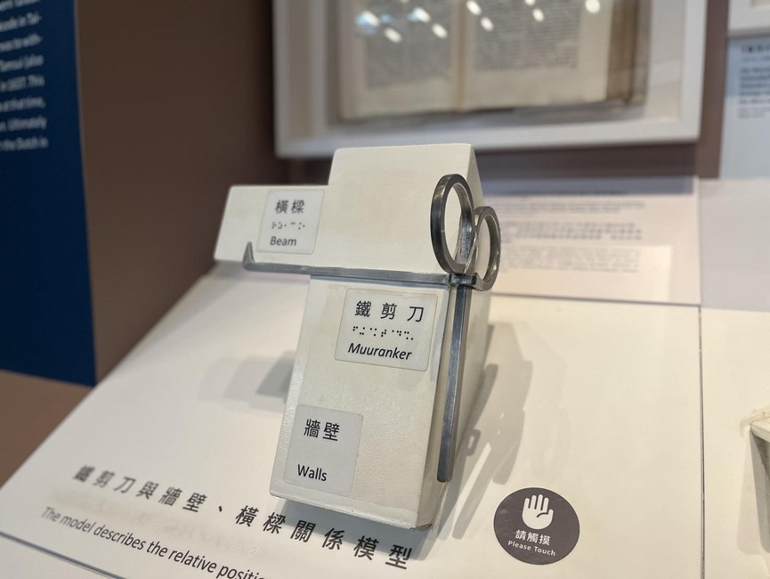 然而,透過原有的歷史年表與上千件展品相互搭配,臺史博嘗試向大眾重新解釋並再現臺灣獨特的歷史文化。這些展品不僅以實物強化大眾對歷史的印象,更承載著豐富的生命故事與文化意涵。以建築構件為例,錢志華指出,臺灣民間建築中常見的「鐵剪刀」,起初由荷蘭人引入,用於外牆壁體與屋內橫樑緊密扣鎖。後來受到時間演變,在臺灣廣泛應用於民宅、廟宇,甚至還被賦予避邪的民俗意義。因此,展品的演變不僅體現殖民交流的痕跡,也說明臺灣人在異文化交會下,如何以自身方式回應與轉化。