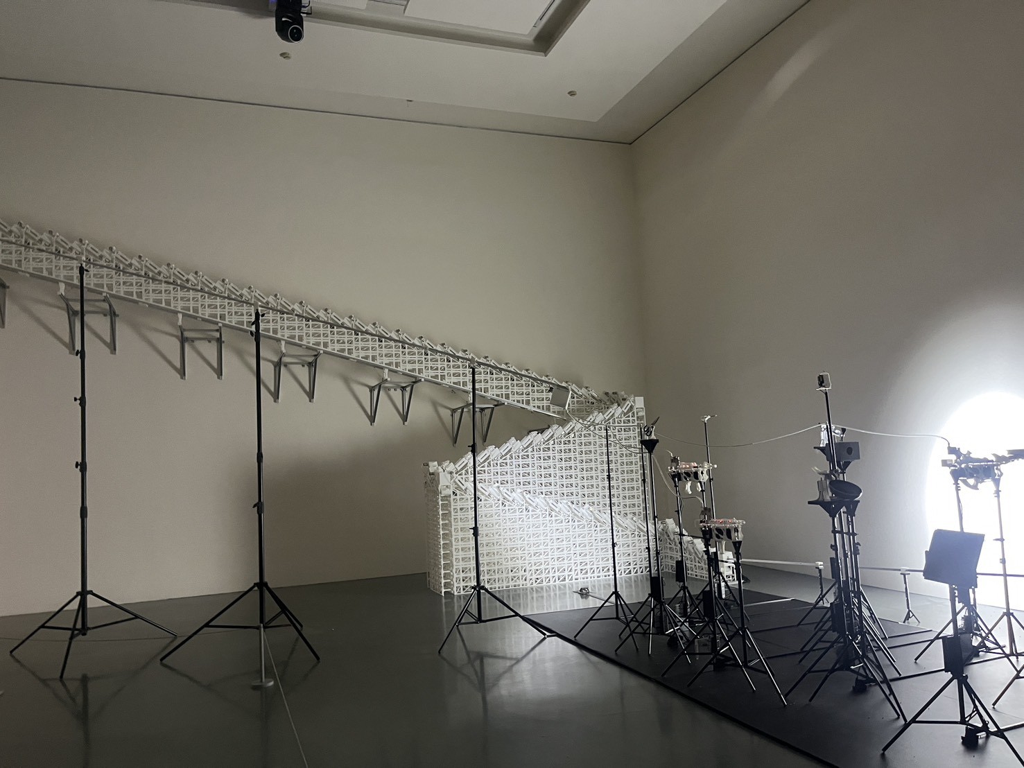 本次展出最重要的作品之一是超大型裝置《生存的辯證法》,展出的藝術家把日常物品變成「武器」,並連結影像技術。當觀眾靠近時,系統會送出「生存守則」,並自動啟動機制,挑選出最適合觀眾的武器,展現出一種由科技安排的「暴力美學」,但這樣的「安全」其實也是一種控制。觀眾被機器辨識、分類,看似被保護,其實也被監視。最後一區為《道德機器》與《流變的哨兵》,探討AI認知的道德底線為何,是否能確切分辨「善」與「惡」,並展現展示邏輯由人機介面悄然轉向機器介面,空間也因此被重新定義。