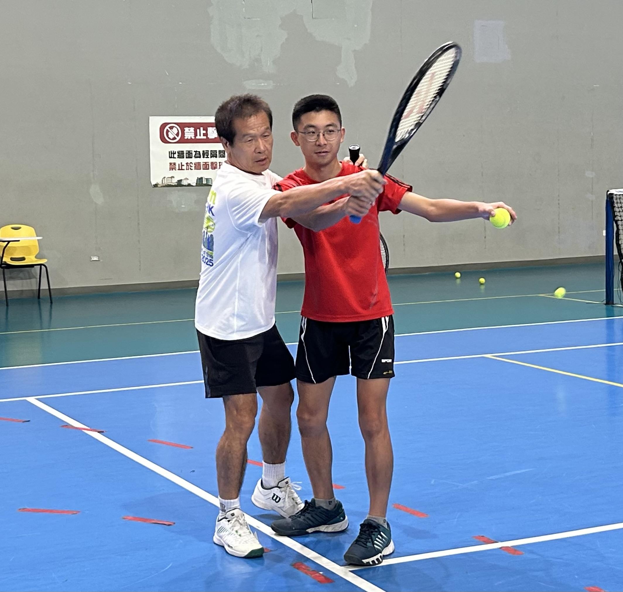▲ 劉宏祐教導學生打網球知識。攝|張歆妤